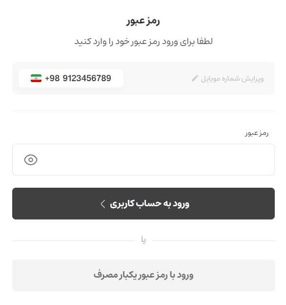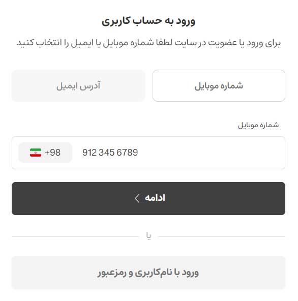مرحله اول ورود شماره موبایل یا ایمیل