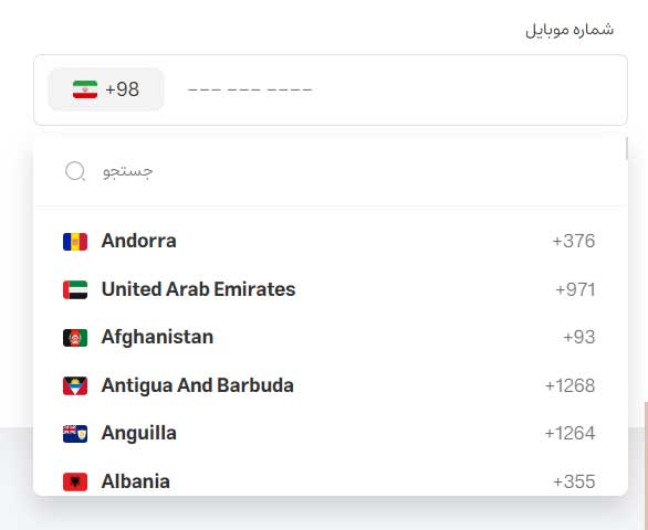 اگر سامانه پیامکی شما از قابلیت ارسال بین الملل پشتیبانی میکند، نگران بخش فنی وبسایت خود نباشید، لاگینفا به خوبی امکان انتخاب کشور و ثبت نام کاربر بر اساس کد کشور را مدیریت میکند. همچنین شما از تنظیمات پلاگین میتوانید فقط کشورهای مورد نظر خود را در این لیست نمایش دهید.